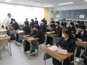 1年生は生蘭に入学して初めての授業とのことで、自己紹介を行ったり、1年間の学習の流れや評価・評定についてのお話がありました。定期試験以外にも提出物や発表など大切なお話が教科担当の先生からありました。また、6時間目は進路や総合の時間となりました。放課後も部活動の見学があり、多くの生徒が参加していました。