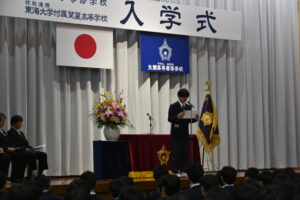 式では、校長より「これからの高校生活で大切にしてほしいこと」として、挑戦する姿勢や仲間とのつながりの大切さについての話がありました。新入生代表による新入生誓いの言葉からは、高校生活への意欲と決意が力強く伝わってきました。