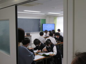 授業参観では、日ごろの学校の雰囲気や生徒たちの学習の様子をご覧いただく機会となりました。生徒たちは少し緊張した様子も見られましたが、普段通り真剣に授業に取り組んでいました。