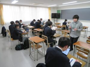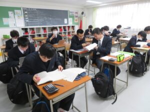 放課後は部活動や、学年別の自習室開放(勉強会)が行われています。自習室に関しては、生徒は積極的に参加をしているようすで、漢字検定に向けての勉強や教科の課題、さらに宿題などに取り組んでいます。自習室開放は3月に行われる進級試験まで、毎週火・木曜日実施してします。これからも前向きに取り組むことを期待しています。