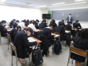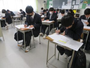 2学期の期末試験も明日で最終日となります。週末の土日を使って、残りの2日間の教科の勉強をした生徒が多いようで、今朝も朝早くから登校し、試験に備えて最後の確認をしていました。明日の2教科の試験を最後までしっかり取り組んでもらいたいと願っています。また試験の後には生徒会選挙を予定しています。