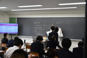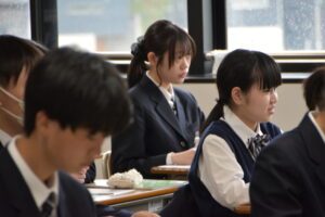 授業では、真剣に取り組む生徒の姿が多く見られ、落ち着いた雰囲気の中で学習が進められていました。また、先生と積極的にコミュニケーションを取りながら理解を深めていく場面もあり、生徒一人ひとりが主体的に学びに向き合っている様子が印象的でした。