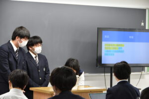さらに、クラスによってはグループごとの発表活動も行われました。互いの意見に耳を傾けながら、自分の考えを分かりやすく伝えようと工夫する姿が見られ、協働的な学びが実践されていました。