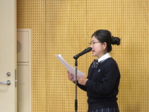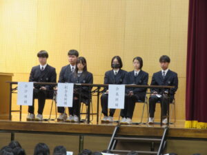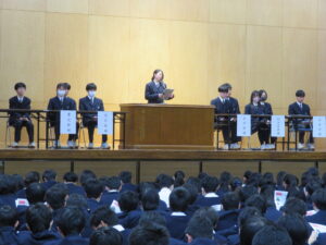 会場には全校生徒が集まり、各候補者ならびに推薦人による主張や公約に、真剣な表情で耳を傾ける姿が見られました。