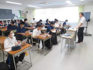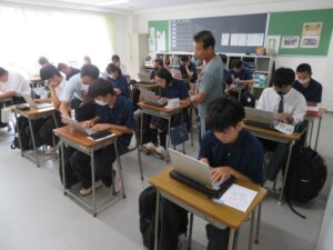 本日1時間目の授業は、各学年学活の授業が行われました。1年生はインターネットリテラシーについての道徳の授業、2年生は修学旅行の振り返り、3年生は生蘭フェスティバル(文化祭)についての話し合いとなりました。休み明けの月曜日でしたが、登校した生徒は楽しく過ごしている様子でした。